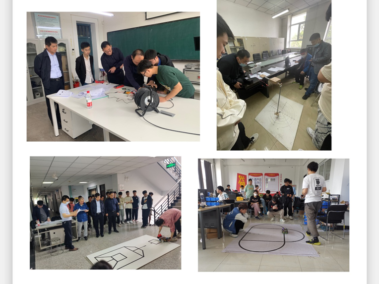 党委书记杨景伟、副院长董博亲临比赛现场进行指导,充分肯定了同学们的竞赛状态。经过评委测评和评审,本次竞赛综合评出一等奖31组,二等奖33组。获得一等奖的参赛队伍将代表我校参加2023年全国大学生电子设计竞赛。