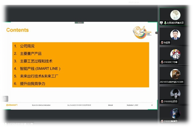 自动化专业、机器人工程专业联合开展的认识实习环节在李岩老师、刘姝阳老师、张振国老师及王越男老师组成的课程团队联合指导下,聘请企业专家、行业翘楚及优秀校友开展线上认识实习,指导组教师认真部署,合理规划报告内容,综合考虑产业布局、行业发展、专业定位及市场需求,为同学们准备了汽车电子及汽车智能制造、工业及服务机器人、智能传感及机器视觉、工业互联网等不同报告主题,从从本地和外埠国有上市企业聘请专家,报告前指导教师组为同学作报告引导,报告后专家与同学进行线上讨论,在实习过程中有机融入课程思政,通过优秀校友自身经历分享,增强了同学们的专业自信、学校自信,对同学们未来的学业规划产生了良性引导。