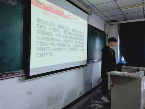 于南湖校区主楼1401室举办“学习新中国《国史》主题微党课”。本次微党课由170304班学生助理田鑫主讲。17级全体党员及发展对象参加。