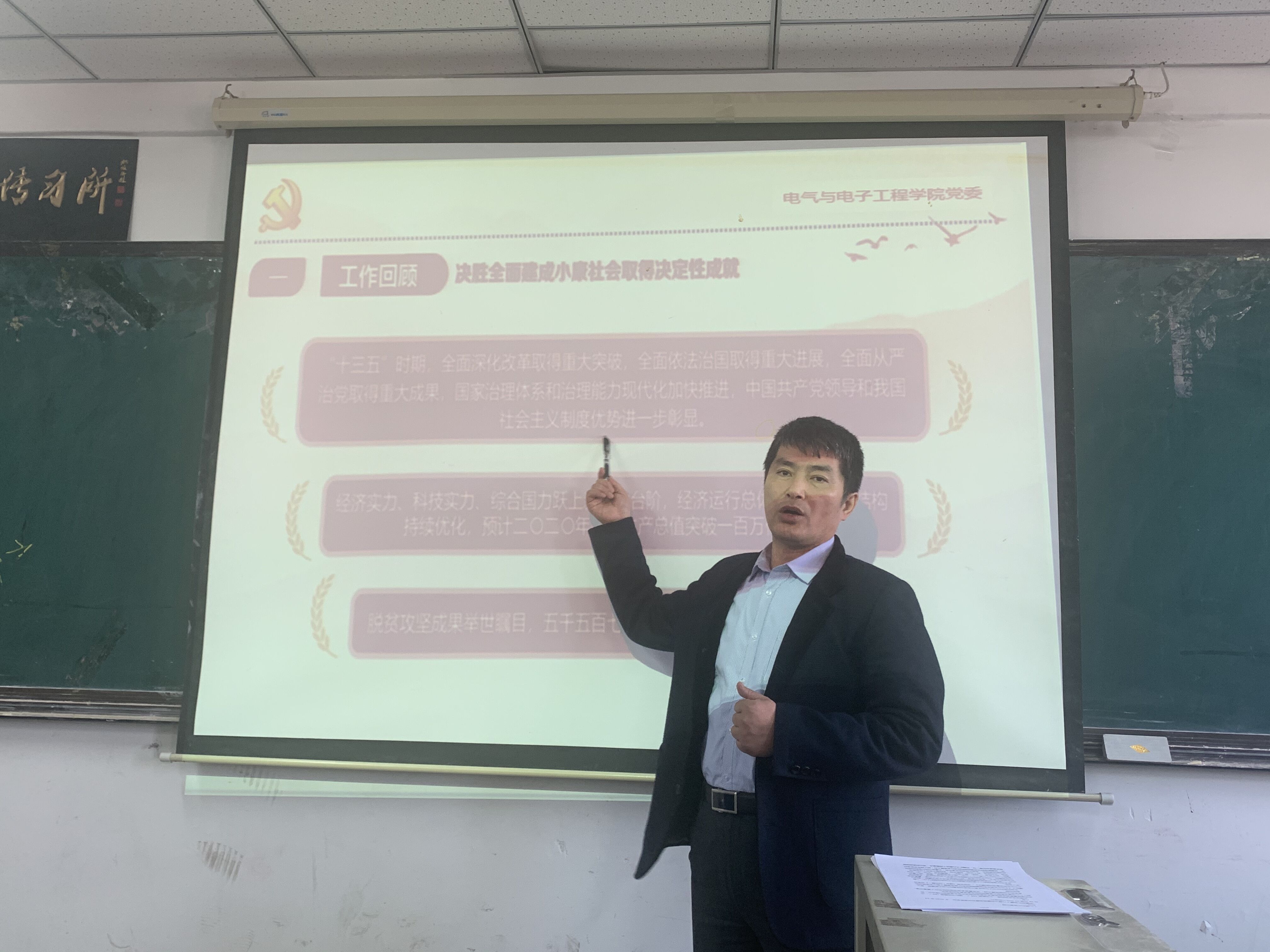 通过主题党课学习教育活动,全体教职员工对党的十九届四中全会以来取得的成就感到欣慰和自豪,并表示立足本职本网,加强师德师风建设,为国家培养和输送更多的栋梁之才,为实现中华民族的伟大复兴贡献力量!