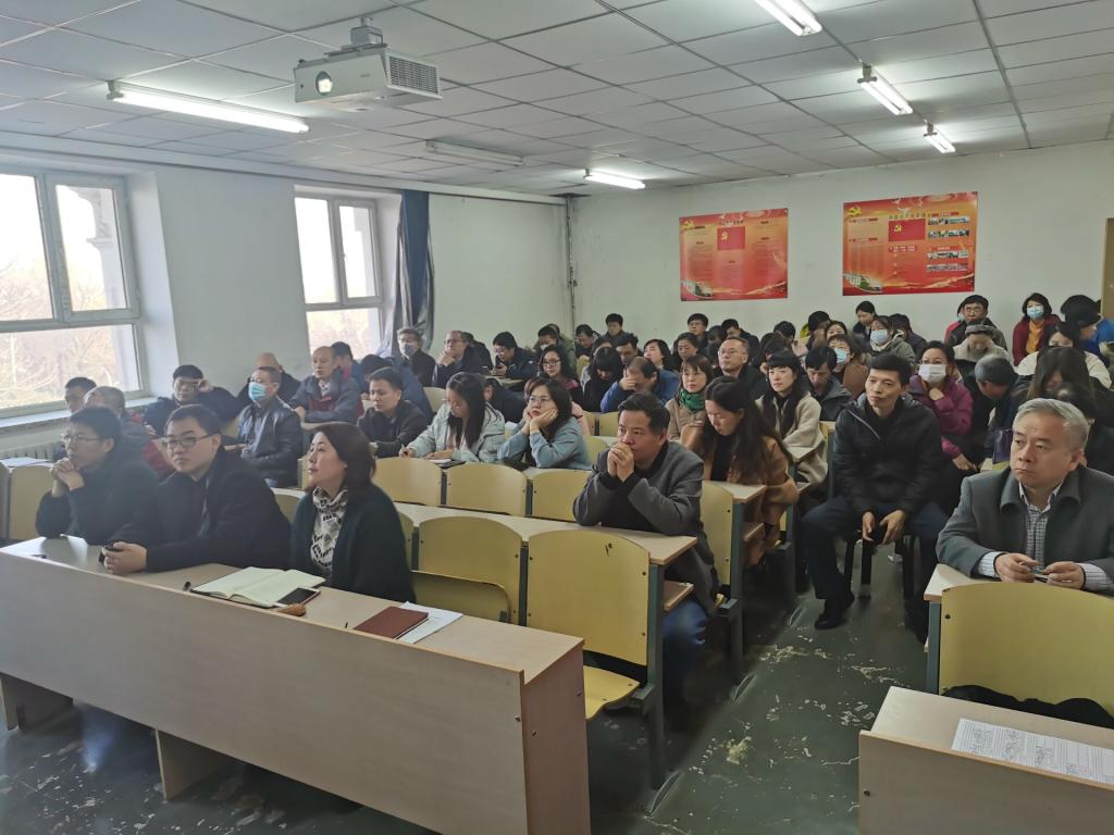 杨景伟同志全面解读了党的十九届五中全会精神,回顾决胜全面建成小康社会取得决定性成就;我国发展环境面临的深刻复杂变化;到二0三五年基本实现社会主义现代化;“十四五”时期经济社会指导思想和必须遵循的原则;“十四五”时期经济社会发展主要目标;全会提出12项重要举措等六项内容。推动教职员工深入理解、准确把握、贯彻落实全会精神。同时要求所有教职员工要把学习贯彻全会精神同推动当前工作紧密结合,继续抓好教学科研、招生就业、博士点申请、一流学科建设等工作。