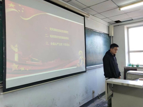 在南湖校区主楼1401室举办“全面从严治党”主题微党课。本次微党课由170308班班长赵凯主讲,17级全体党员参加。