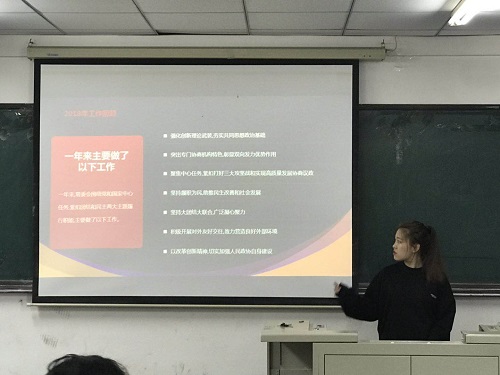 在南湖校区主楼1401室举办“学习全国两会精神”主题微党课。本次微党课由160305班团支书奚旺主讲,16级全体党员,17级团支部全体成员参加。
