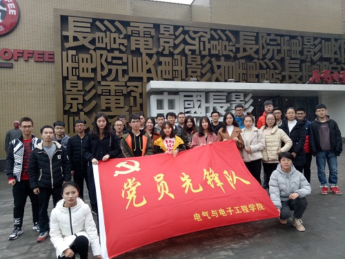 学生党员于长影电影院观看《厉害了,我的国》记录电影。这部电影呈现了党的十八大以来中国的发展和成就,以及十九大报告中习近平总书记提出的中国特色社会主义进入新时代这一伟大论述。
