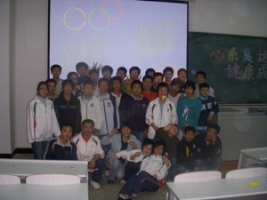 07级辅导员任佰鹏、赵爽与同学们共同展开讨论。 活动中,同学们认真学习了《人民日报》、《光明日报》和《中国青年报》的社论员文章,就奥运会在中国的成功举办、奥运火炬的传递、藏独分子分裂国家的恶行等热点问题展开了热烈的讨论,许多同学都发表了自己的看法,并纷纷表示,奥运会的举办说明了中国的日渐强大,任何分裂国家的行径必将遭到全体中国人民的强烈指责和抗议,自己更要以实际行动学习和贯彻十七大精神,为构建和谐校园、争创文明大学生贡献力量。     |