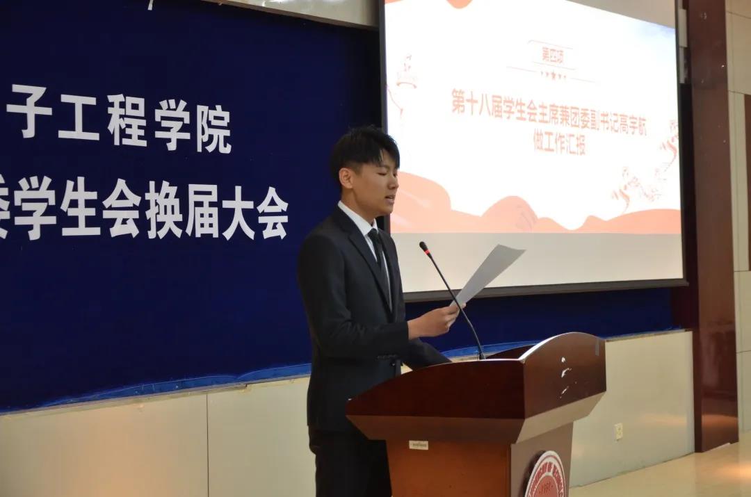 由第十八届团委副书记兼学生会执行主席高宇航作上一届团委、学生会工作报告;