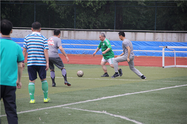 党委书记王丽娜为比赛开球。比赛开始,双方队员迅速进入状态,各队配合默契,防守严密,稳扎稳打。比赛进行的如火如荼,双方抓住每一次机会,将最佳的状态呈现给了现场观众。赛场边响起阵阵呐喊声加油声。经过90分钟的较量后,教师联队取得了比赛的胜利,老师和毕业生同学们互相拥抱,共叙师生情。