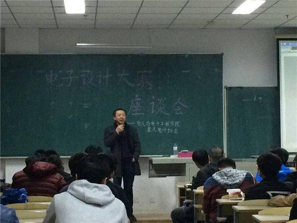 星光电子协会会员及有意参加电子设计大赛的同学们聆听讲座。