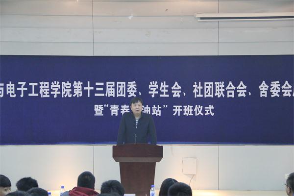 在南湖校区综合报告厅召开了第十三届团委、学生会、社团联合会、舍务委员会成立大会暨“青春加油站”开班仪式,参加会议的有校团委组织部部长邵捷,党委副书记矫东海,学生党支部书记郑洪斌,团委书记赵爽,党支部书记高博、单红朱以及校学生会、兄弟新澳彩开奖直播