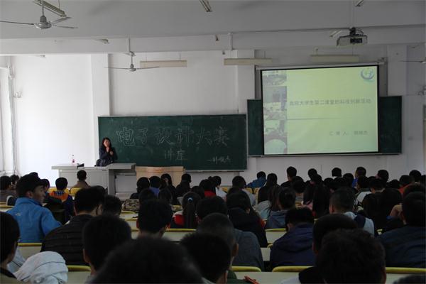 在南湖校区综合楼一楼举办了大学生电子设计大赛讲座,由电气工程系教研室副主任韩顺杰教授主讲,学生党支部书记朱博及全体大二学生出席了讲座。