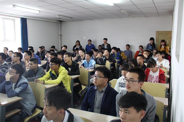 学生党支部书记高博及星光电子协会会员聆听讲座,讲座由仪器系初明老师主讲。