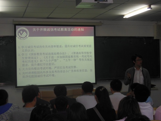 各年级辅导员召开了年级会,和同学们学习了《国家教育考试违规处理办法》、《普通高等学校学生管理规定》等有关规定要求,提升了同学们对诚信考试重要意义的认识。