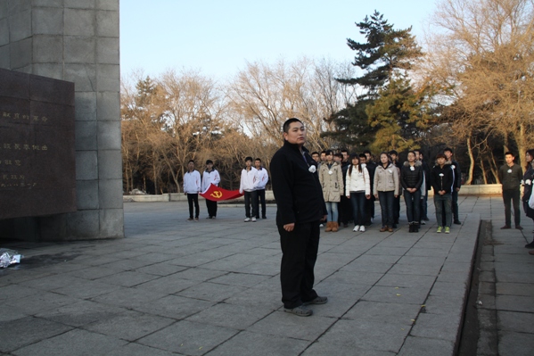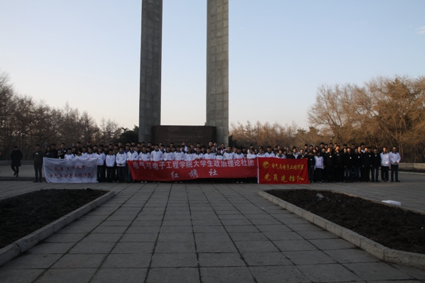 早上6:00,同学们来到了南湖公园的解放纪念碑前,全体同学在庄严地纪念碑前默哀3分钟,追忆先烈们的音容笑貌,缅怀先烈们的丰功伟绩,告慰先烈们的峥嵘岁月,随后党员代表向解放纪念碑献花,社团联合会主席赵景兴带领全体党员面向党旗庄严宣誓,一句句铿锵的誓言,书写着共和国可歌可泣的篇章,鼓舞着青年学子对青春梦执著的追求。郑洪斌做总结发言,他说,忆往昔,革命先烈是我们世世代代中华儿女的光荣和自豪,是永远值得我们崇敬和爱戴的楷模!看今朝,我们继承革命先烈的遗志,高举旗帜,大力弘扬“爱岗敬业、求实创新”的工大精神,始终保持与时俱进、奋发有为的精神状态。望未来,时刻铭记自己肩负的历史使命,勇于接过社会主义现代化建设的接力棒,求真务实,积极进取,为实现中华民族复兴的民族梦做出应有的贡献!  清明祭扫是一次鲜活生动的红色课堂,回顾、重温了历史。在激发同学们爱国主义情感的同时还引导大家树立正确的世界观、人生观和价值观,使同学们对革命精神的理解和传承有了更深的体会。 |