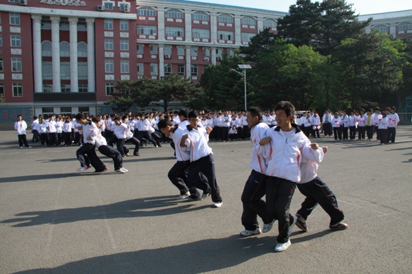 2011级全体同学在南湖校区教学主楼前的篮球场举行“Super class”班级挑战赛系列活动之团结的力量——三人夹球跑的大学生群体活动。新澳彩开奖直播