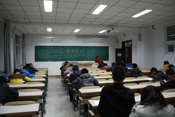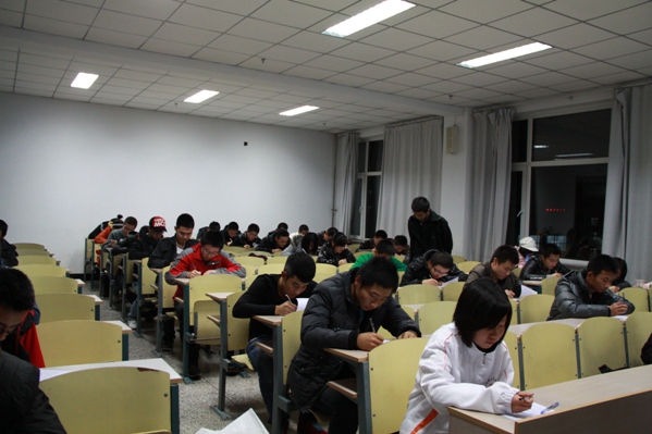 全体新生参加了这次考试,考前由班长强调考风考纪,让同学们端正考试态度,认真答题、争取取得一个好成绩。然后由团书记将考题抄在黑板上,作答时同学们严格要求自己,严守考场纪律,认真答卷,监考人员严肃考场纪律,给了大家一个公平竞争的平台,此外,院团委副书记徐乐,于洋,学生会主席徐超,副主席刘旭等学生会干部为保证考试能公平公正的进行,亲自参加巡考工作。考试期间多次深入各考场进行检查。