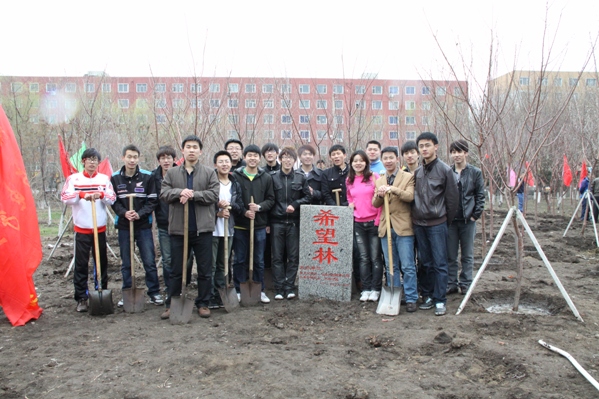 我院党员先锋队参加义务植树活动 4月23日,为纪念建党90周年,由长春市园林绿化局、长春市绿化委员会办公室、长春公园、新文化报社联合推出的大型公益植树活动,9时在长春公园拉开了帷幕。我院党员先锋队在队长李佳骏带领下一起种下了一片“希望林”。