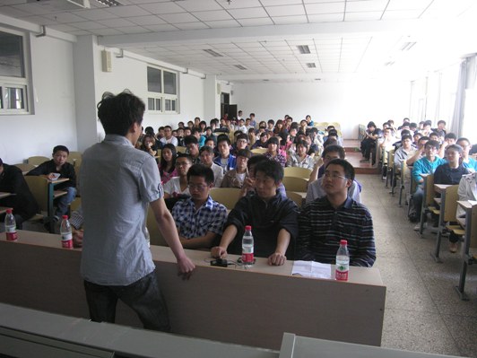 马斌斌,东南大学王斌,北京理工大学裘俞杰,东北大学曹俊伟、刘淑清、付文英,哈尔滨工业大学侯庆慧、赵颖伟,哈尔滨工程大学王波、孟庆丹,吉林大学王德福、金多、李阳。随后,大四的同学们分别从考研程序、学校选择、复习方式、如何克服心理压力、重视英语学习、搜集和关注考研信息、确定考研方向和导师等不同方面进行了详细介绍,现场不是爆发出热烈的掌声。同学们的兴致特别的高,积极的提问,有的同学问道如何的备考,有的同学问道具体哪个考研班适合自己,有的同学问道如何能拿到外校的考研真题,各种问题层出不穷,以上13名同学也根据自己的实际和所考取的专业为同学详细的一一解答,得到在场同学们的肯定,并投去赞许的目光。