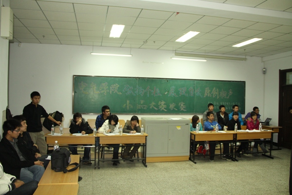 本次原创相声小品大赛进入决赛的作品主要由大一的新生选送,演员们经过长时间的准备,克服在没有专业的教师指导,仅凭学习后的课余时间进行排练,参赛的作品内容大多是同学们入学对大学美好生活的的感受、体验、向往,为我们带来了一个个生动、风趣的相声和小品。赛后评委为参赛选手提出了问题,做出了指导。我院将选送优秀作品参加校级比赛。