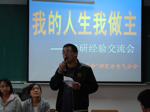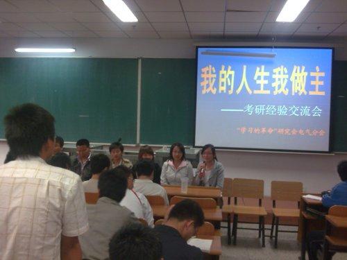 首先,赵老师介绍了参加交流会的代表:考取东北大学的刘秉星、合肥工业大学的郑勇、哈尔滨工业大学的姜鸣燕、吉林大学的王堒、浙江工业大学的曹福灵、河北工业大学的李记英、解放军理工大学的王昱霖。同学们的兴致特别的高,刚一落座同学们就积极的提问,有的同学问道如何的备考,有的同学问道具体哪个考研班适合自己,有的同学问道如何能拿到外校的考研真题,各种问题层出不穷,以上7名同学也根据自己的实际和所考取的专业为同学详细的一一解答,得到在场同学们的肯定,并投去赞许的目光。赵老师在最后的总结说,今年是我校的“文化年”建设,此次活动旨在推动我院的学习氛围,提供一个和学长交流的平台,同学们通过优秀学长们的倾囊相助,理解了大学学习生活的经验,掌握了克服学习生活中的困难的方法,确定了正确的奋斗目标,并帮助广大同学及时解决和处理在考研过程中遇到的各种困难和问题,并强调:考研是磨练人意志和耐心的过程,它是一场持久战,我们一定要有信心、耐心和决心打赢这场战争,实现自我的超越,积小胜为大胜,以时间换空间。会后赵老师对以上7名同学表示祝贺和衷心的感谢,希望同学们多关心母校的发展。