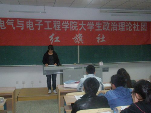 红旗社新会员入会仪式暨纪念五.四运动90周年系列活动之流金岁月爱国电影展的活动在教学科研楼314教室举行。出席该活动的有红旗社社长姜萌萌,副社长丁国,秘书长张红豆,社会实践部部长訾光大。 首先由红旗社副社长丁国宣布红旗社主要成员名单,随后由社会实践部部长訾光大宣布了红旗社的章程,接下来由红旗社秘书长张红豆宣布红旗社管理制度。最后红旗社社长姜萌萌带领全体社员做入会宣誓并发言总结了一年来红旗社的工作,并结合我校文化年活动和新澳彩开奖直播