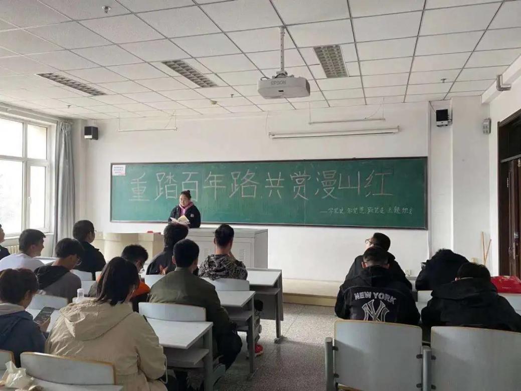 班会上的同学们专心听讲,认真思考,享受了精神上的洗礼,必将从中汲取爱党爱国的力量,发扬红色传统,跟随党的步伐,迈向新征程,奋进新时代。
