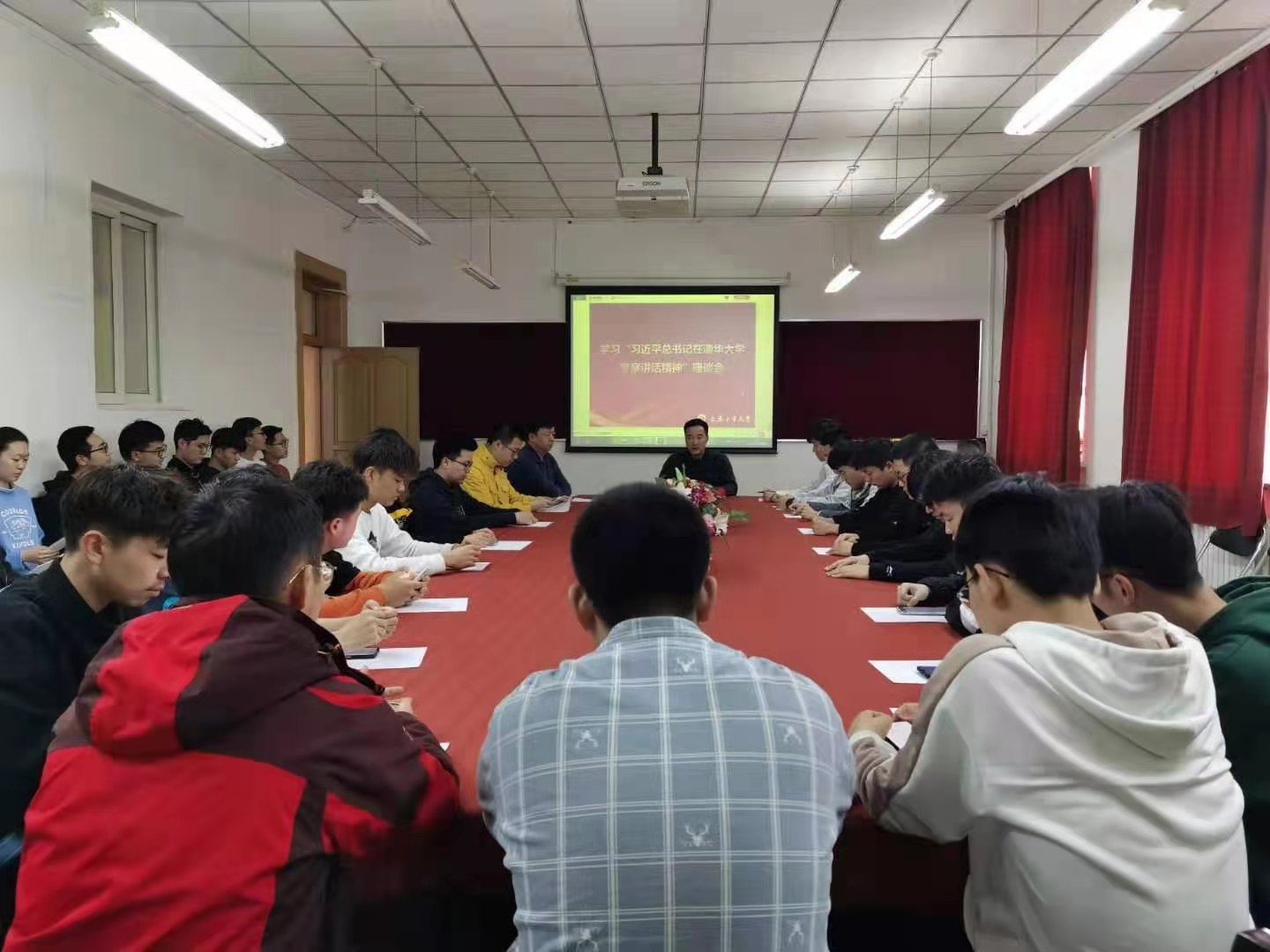 单洪朱老师在总结中提到,同学们要肩负历史使命,坚定前进信心,立大志、明大德、 成大才、担大任,努力成为堪当民族复兴重任的时代新人。要勇于创新,深刻理解把握时代潮流和国家需要,敢为人先、敢于突破,把个人成长与国家民族的命运紧密相连。同时引用习总书记的要求,告诫同学们要实学实干,脚踏实地、埋头苦干,孜孜不倦、如饥似渴,在攀登知识高峰中追求卓越,在肩负时代重任时行胜于言,在真刀真枪的实干中成就一番事业。