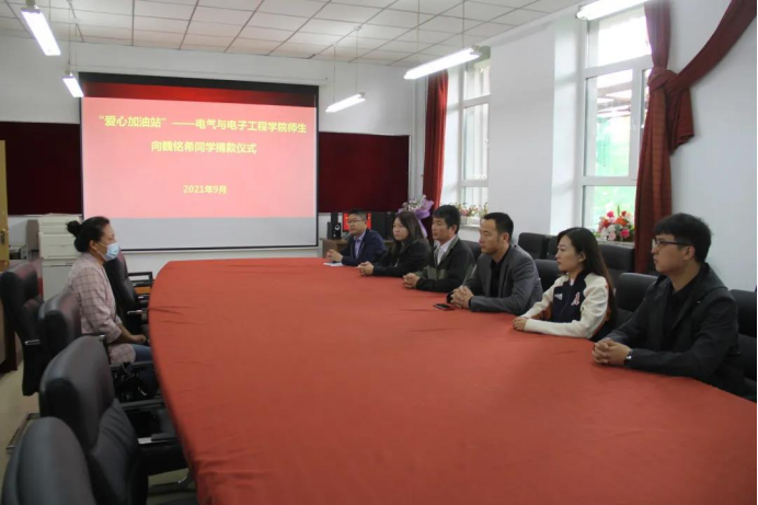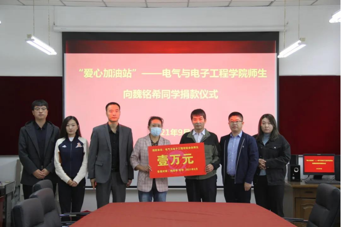 在今年暑假,我院19级同学魏铭希被诊断出原发性骨髓纤维化,病情较为严重,我院在得知魏铭希同学这一以特殊情况下,为解决经济上的难题,帮助他渡过难关,早日重返校园。9月23日,一场援助工大电气人捐款仪式顺利进行。