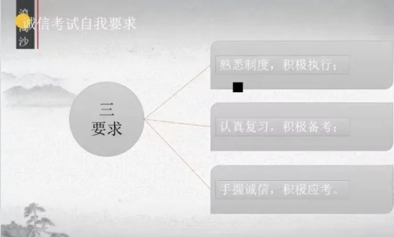 会议强调诚信考试的重要性,并指出诚信考试的目的以及要求。同时结合小故事以及案例提高同学们的诚信意识,让同学们明白,无论是任何形式的考试,诚信考试都不是束缚,而是作为新时代新青年应该承担的责任。