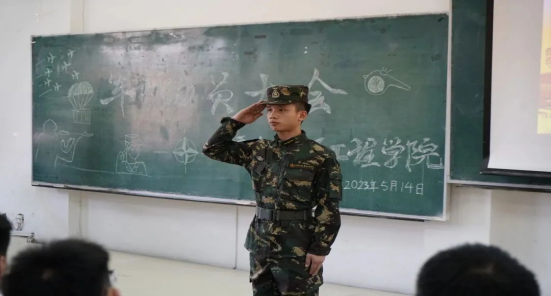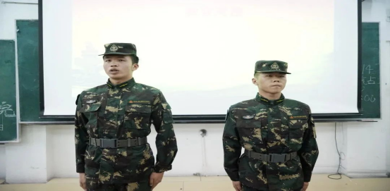 最后,由三位教官代表进行教官与参训学生的对接。三位教官均表示在接下来的军训生活里会在严格要求同学的同时严格要求自己,圆满完成本次军训任务。