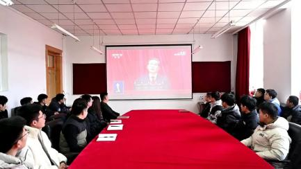 的师生们齐聚一堂,共同观看第十四届人民代表大会的盛况。