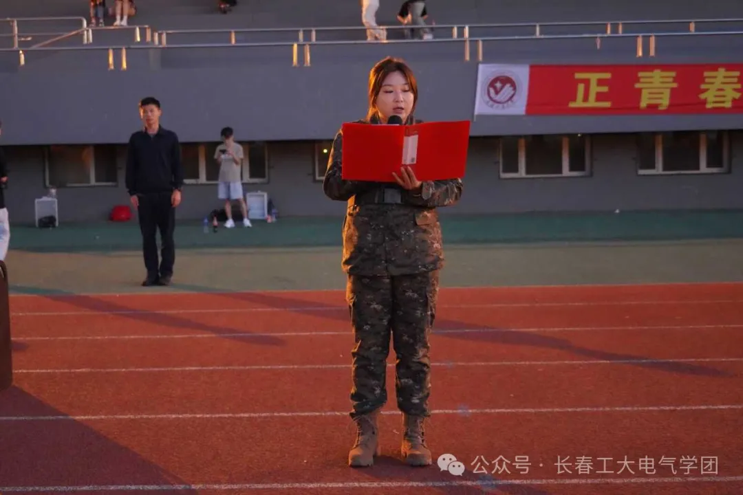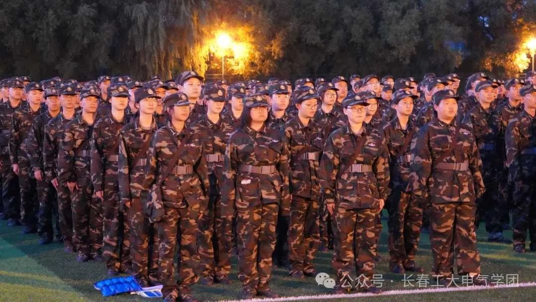 当天晚上,南湖校区操场上,红旗飘扬,军歌嘹亮。全体24级新生身着整齐的迷彩服,精神抖擞,斗志昂扬。他们以饱满的热情和坚定的信心,迎接军训的挑战。