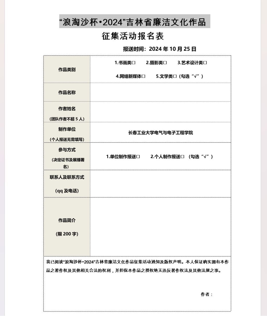 2024年校园廉政文化作品创作大赛。