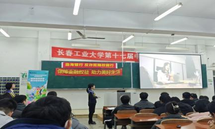 讲座伊始,渤海银行的相关工作人员结合真实且典型的案例,深入剖析了常见的诈骗和网络赌博形式。从花样翻新的电信诈骗,如冒充公检法诈骗、网络刷单骗局,到隐蔽性极强的网络赌博陷阱,每一个案例都触目惊心。他们详细讲解诈骗分子如何利用学生的单纯与对社会的不熟悉,一步步诱导大家陷入圈套,让同学们深刻认识到这些违法犯罪行为的严重后果,现场气氛严肃而专注,同学们全神贯注地聆听。