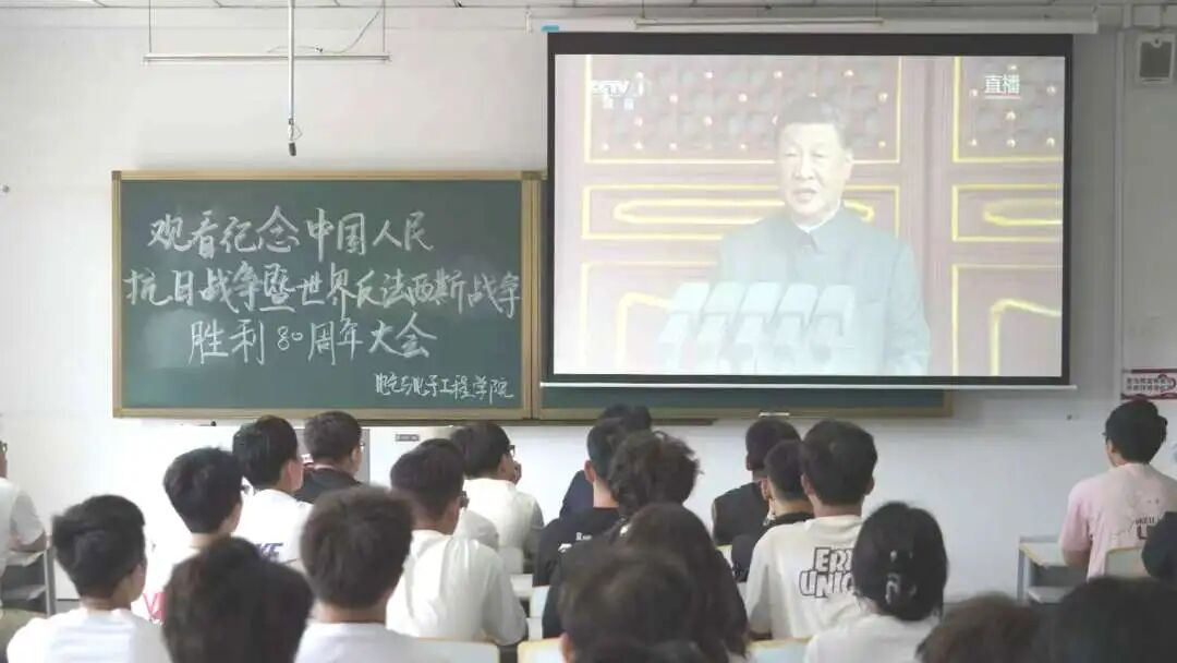 今日我怀着无比崇敬与肃穆的心情,全程观看了纪念中国人民抗日战争暨世界反法西斯战争胜利80周年大会。滚烫心绪为历史回响所激荡,灵魂更受深刻感召!八十载光阴流转,那段峥嵘岁月依旧滚烫。这胜利,是中华民族压不垮的精神图腾,更镌刻着“和平从来不是天降馈赠”的千钧启示。身为新时代青年学子,我们当以敬畏之心叩问历史、以赤诚之魂传承薪火,以我辈之韶华护佑家国安宁,以青春之奋斗托举民族复兴,让不朽的抗战精神在新时代的征程上绽放万丈光芒!