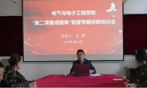 在1303会议室召开“第二课堂成绩单”制度专题讲解培训会,由团委书记王亮老师主讲。