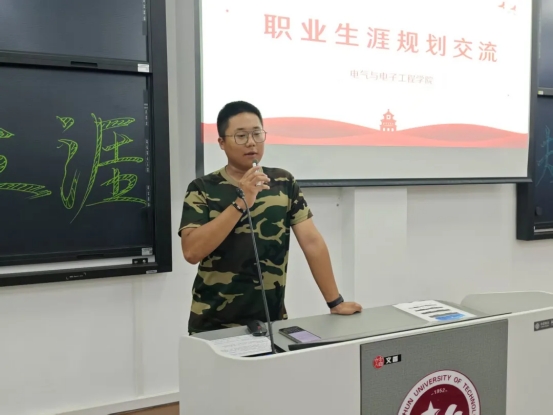 在综合一阶梯教室面向全体大一学生,召开主题为“职业生涯规划交流”经验分享活动。