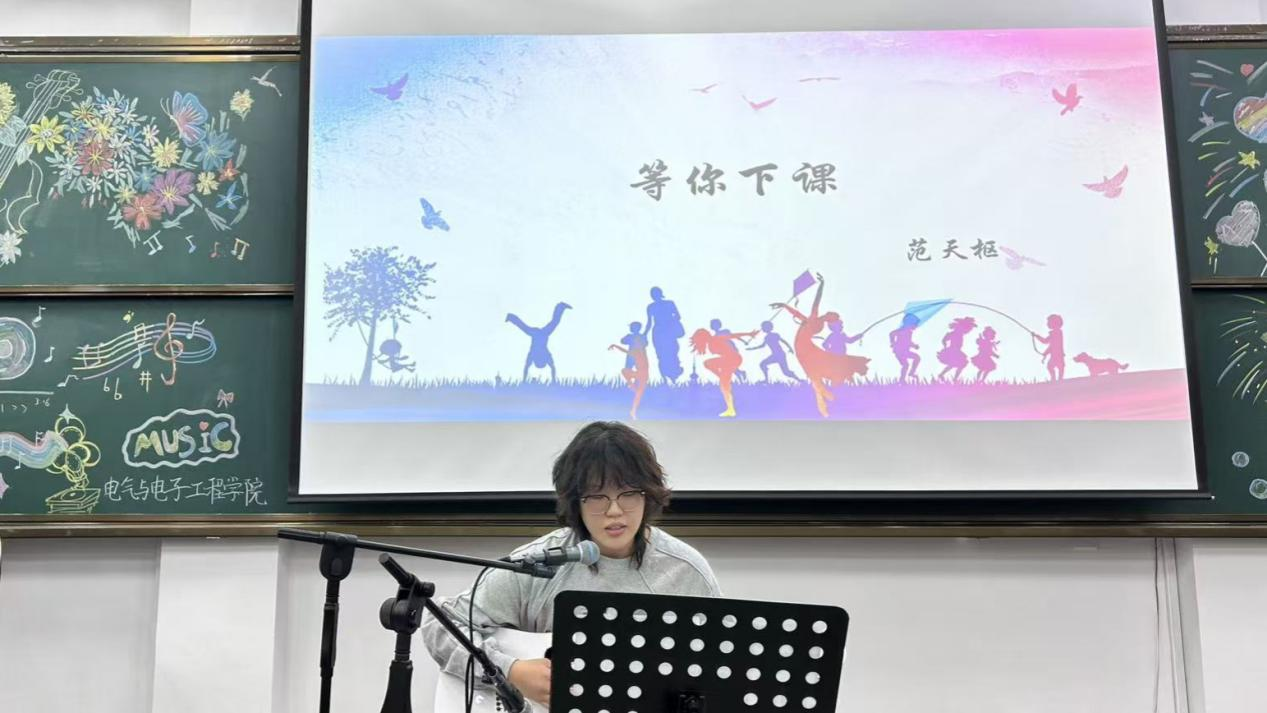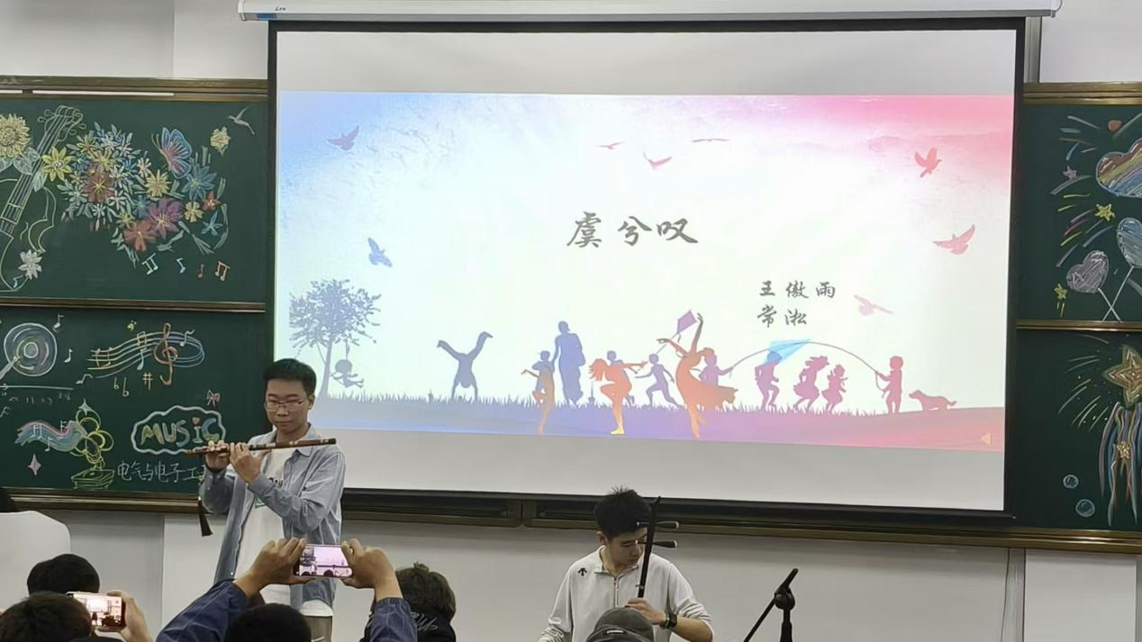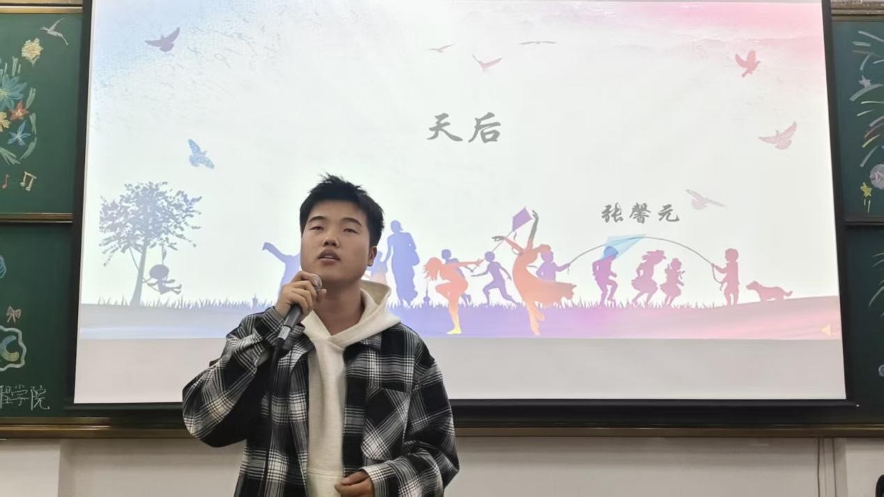 本次才艺比拼由谷欣竹、李杭聪两位同学共同主持。演出在王博、王斯琦合唱的《像极了》中拉开序幕,随后王傲雨、常淞合作演唱《虞兮叹》,周鑫成独唱《谁》,范天枢倾情演绎《等你下课》,为现场营造了温馨的文艺氛围。