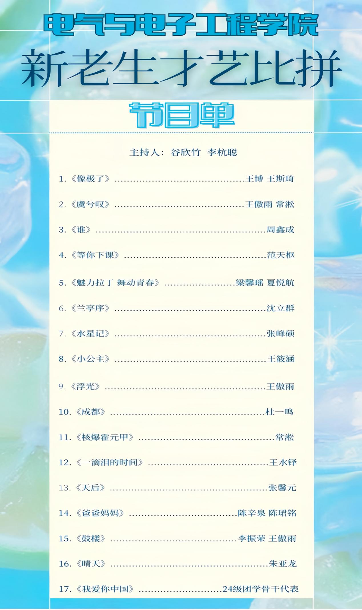 新老生才艺大比拼节目单