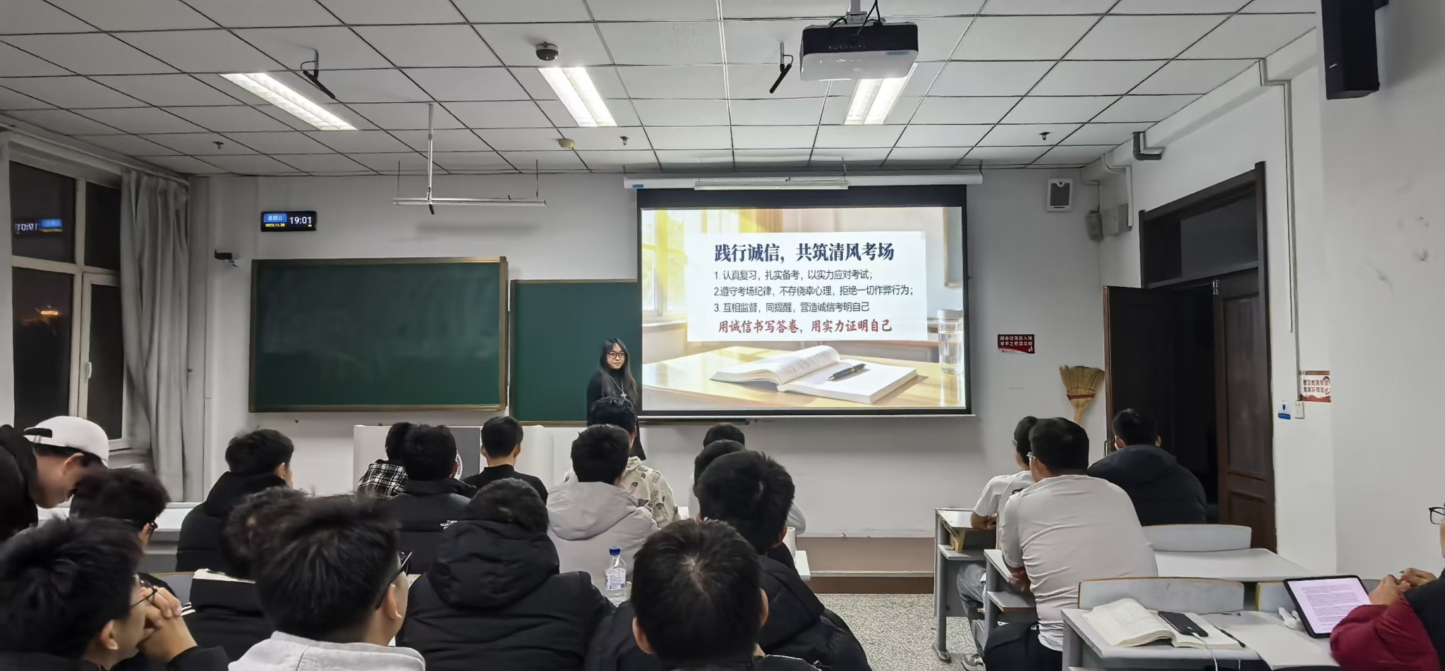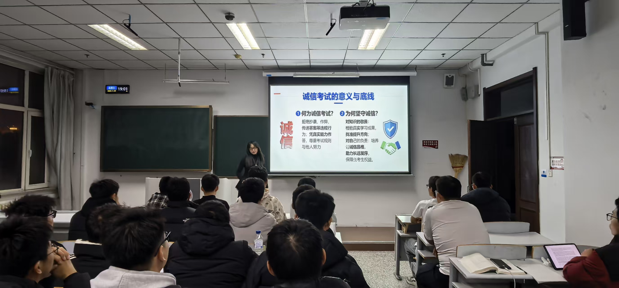 宣讲会上,围绕考试纪律、诚信准则展开解读,阐明作弊危害,重申校规校纪的严肃性。进一步强化“诚信为本、作弊可耻”的价值共识,让优良学风在班级中落地生根。