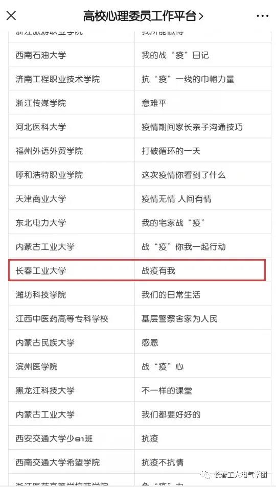 心理工作站的各位老师对参评作品的细心指导,感谢长春工业大学大学生心理健康教育与咨询中心对我院心理教育工作的大力支持!
