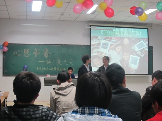 交流会开始,由歆航书友会会长王艳飞与广大书友分享了她对《梦里花落知多少》的独特感悟,她以一首诗开场,由诗及文,由浅入深的为同学分享了她的读书心得。让每位书友感受到小说带来的无穷魅力。接下来,校记者团文学部部长苏思航讲述了他心目中的纳兰容若,他以时下的流行歌曲为引,生动形象的为同学们介绍了《浣溪沙》、《减字木兰花》两首词,从词人的家世,爱情等多个方面入手,使同学入其境、品其味、感其美、悟其情,为同学们勾勒出了一个更加饱满的纳兰容若的形象。紧接着,由李昊林,代晓霞等四位同学带来了《人生若只如初见》的原创配乐散文诗表演,以古典剑法配以琵琶曲,将同学带入了一个唯美的古典世界。之后,是一场以“电子书带给了我们什么”的辩论赛,双方辩手唇枪舌剑,针锋相对,据理力争,激起了本次交流会的高潮。辩论会后,来自大一的几位书友为大家带来他们的读书心得,与广大书友交流分享。 在活动的最后,赵老师将自己多年来的读书心得分享给大家,同学们的阵阵掌声。他表示,作为当代的大学生,应当多读书,读好书,用知识武装自己的头脑,尤其理工科院校的学生更应该增长自己的阅读量。接着,赵老师又对本次活动作出了总结并高度称赞了此次读书交流会的成功举办,同时对歆航书友会下一步的工作和发展方向作了具体展望和安排,本次交流会就在这样一种谈心交流的轻松氛围中圆满结束。 歆航书友会是由新澳彩开奖直播