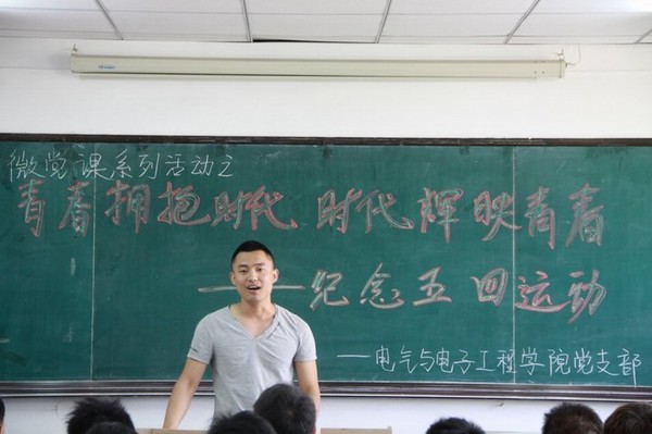 活动开始由学生党员王艳飞同学上台讲解。王艳飞同学介绍了五四运动的来历,“外争主权,内惩国贼”,1919年5月4日我国青年人的英勇行为使得全国掀起一股反帝爱国的热潮。如今,以“爱国、进步、民主、科学”为核心的五四精神,仍然值得当代青年的积极学习与传承。然后又讲述1914年的第一次世界大战到1919年的与五四所发生的事件。这使同学们重温一下历史,加深同学们对五四运动来历的印象。接下来由学生党员赵景兴同学结合近代发生的事件简述了自己对五四运动精神的理解和体会。并且强调当代青年应该如何做才能更好的体现五四运动的精神,借此来实现五四运动赋予当代青年使命和自我人生价值。用自己的行动去体现五四精神的深刻内涵,进而为祖国和社会贡献力量。最后郑老师进行了点评,他肯定同学们的学习态度,同时也提出同学的不足和自己的希望。并强调同学们可以分组学习,互相讨论,这样更有益于对五四运动的理解和以后的学习.