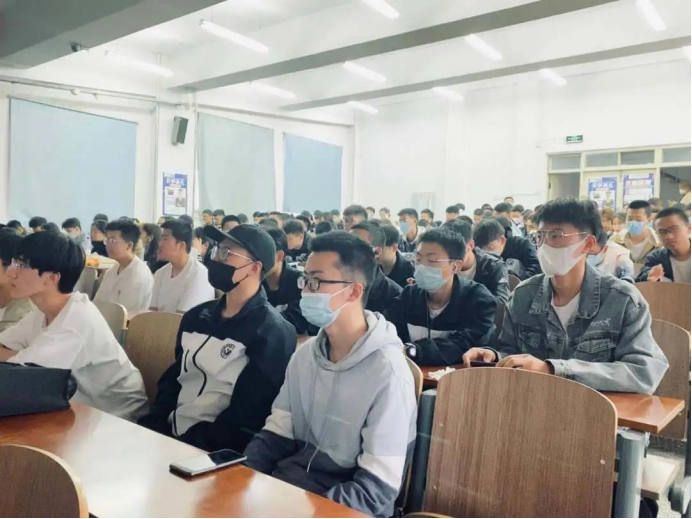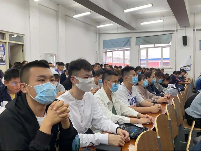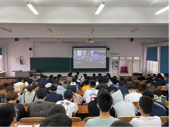 6点30分,我院学生佩戴口罩早早地等候在综合四等待影片放映,学生期待的眼神中夹杂着些许崇敬和肃穆。