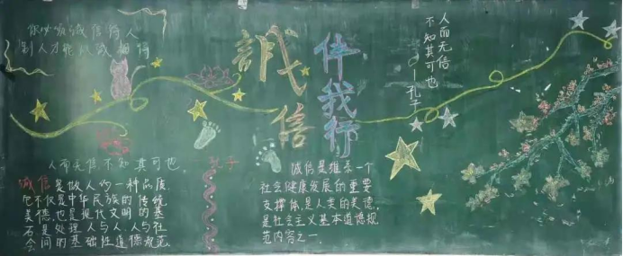 诚信是我们中华民族的传统美德,我们应该坚守一生。作为新时代大学生,我们是祖国明天的栋梁,在日后的学习生活中,待人真诚,才能够去实现和谐社会的美好愿景,就让我们伴随诚信,去创造美好的未来!