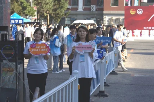 当新生到达长春工业大学,看到不仅是“你好,新同学”红色欢迎墙,还有帅气美丽的志愿者在校门口热情的接待。