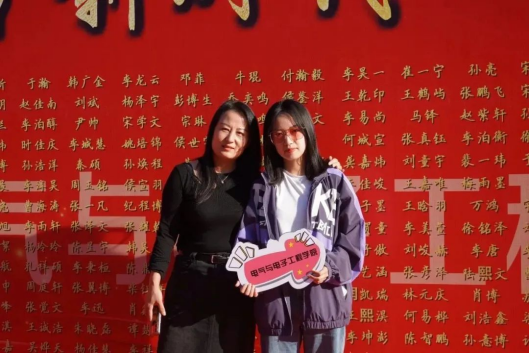 所有学生名字的欢迎墙合影,一家人一起拍照,留下珍贵的回忆。