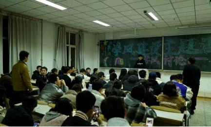于周日晚上7点在科研楼内举行了“学风大讨论”主题活动。