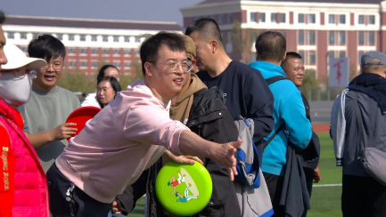教工组的飞盘大作战精彩上演。老师们活力满满地站在场地中,手中紧握着飞盘,眼神专注而坚定。随着比赛开始的哨声响起,飞盘在空中划出一道道优美的弧线。
