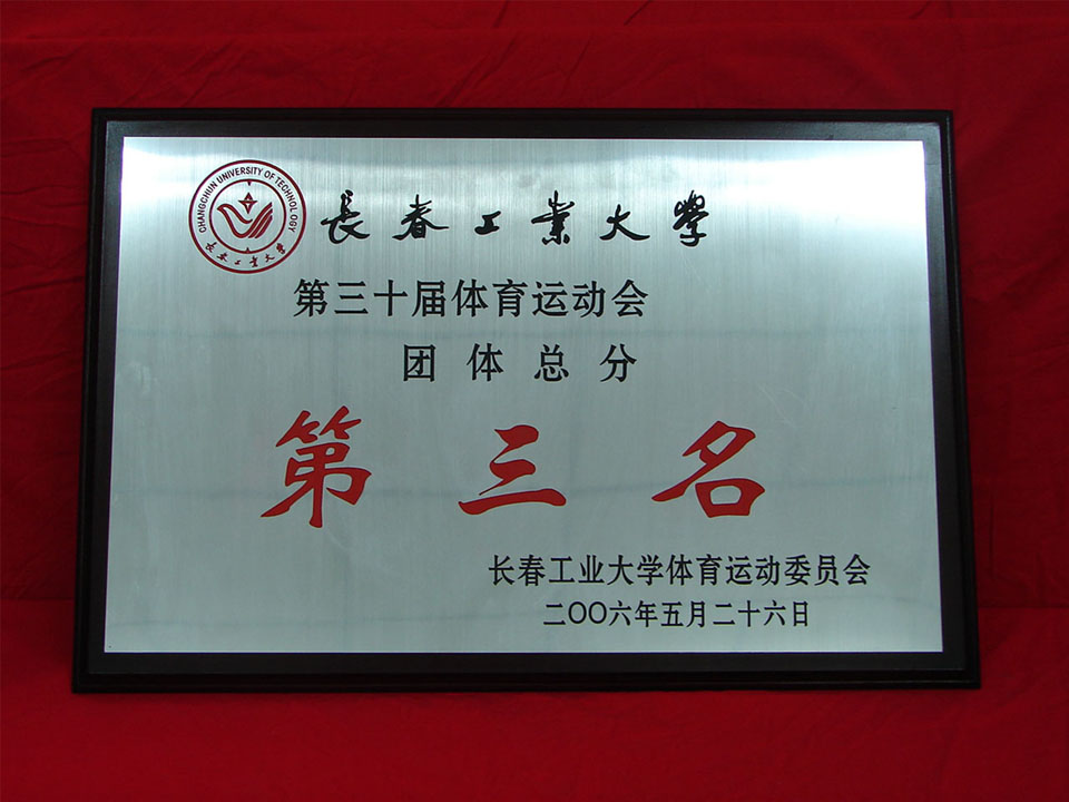长春工业大学第三十届体育运动会团体总分---第三名