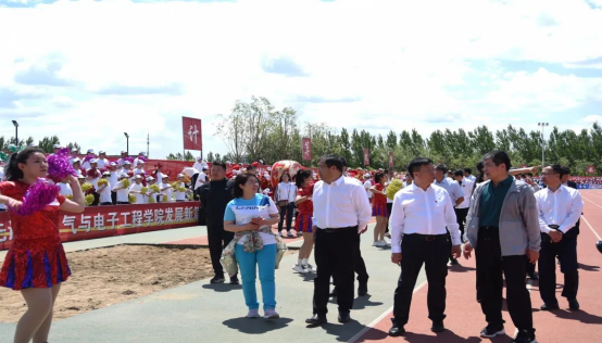 伴随着运动会的进行,我院接受各位校级领导的指导检查。校领导鼓励在场的所有电气学子,极大地振奋了我院的士气,迎来了同学们一阵又一阵的欢呼与喝彩。